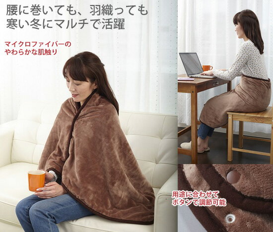 ホットブランケット ◆日本製・保証付◆【あったかブランケット SB-H502】 電気毛布 電気ひざ掛け マイクロファイバー ポンチョ 腰巻き 洗える
