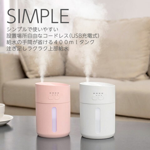 仕様 入力電圧:5V 入力電力:5W バッテリー容量:2000mAh 水タンク容量:400mL 加湿量:30mL / H 稼働時間:タイマー 8時間、4時間、2時間、1時間 製品サイズ:直径94mm × 高さ144mm 製品重量:274g 生産国:中国 ※初めてご使用になる場合はフィルターが十分に水を吸い上げるまで時間がかかる場合がございます。